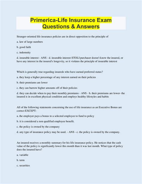 Download PRIMERICA LIFE INSURANCE EXAM QUESTIONS AND ANSWER PDF Library Genesis